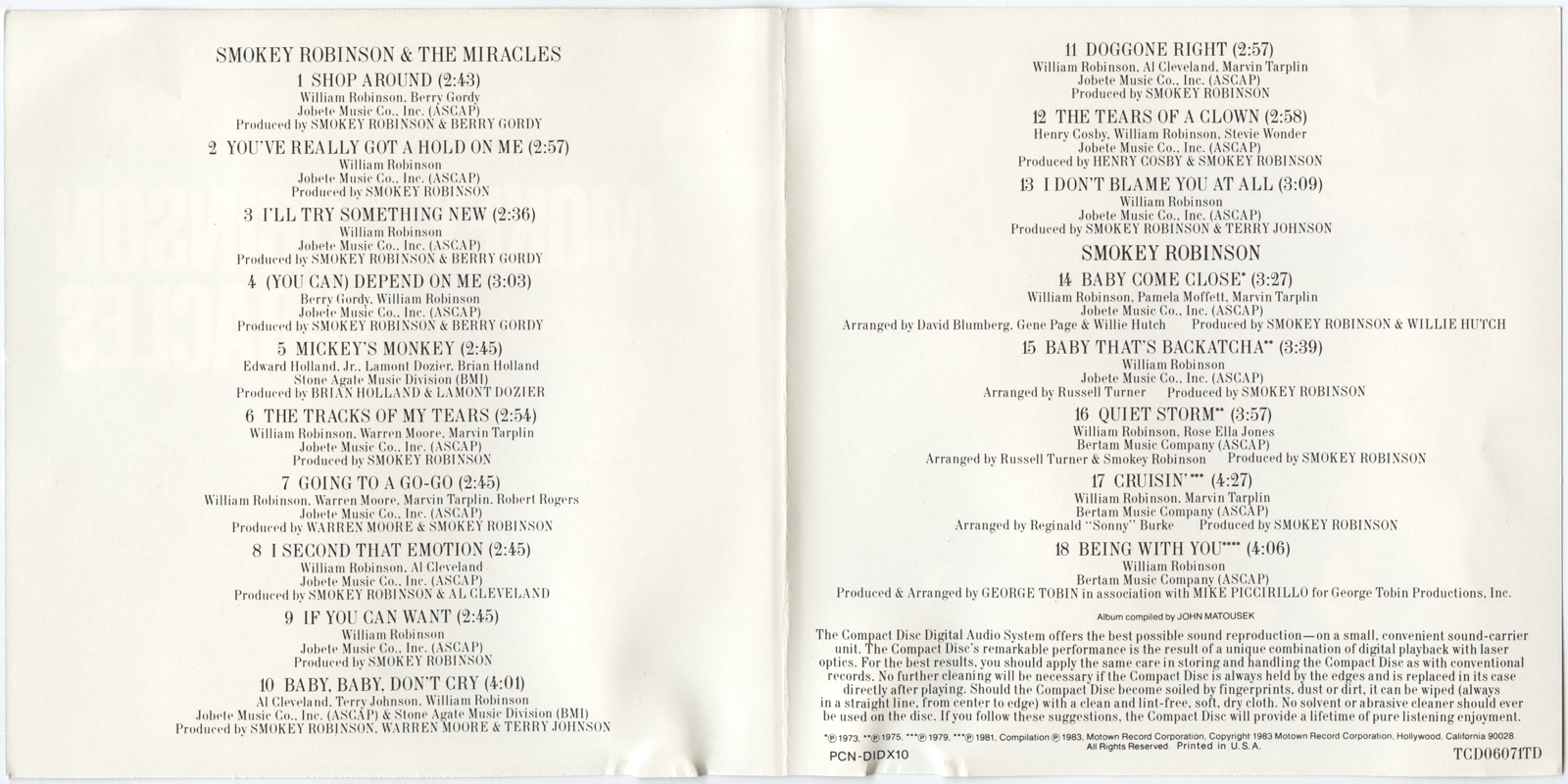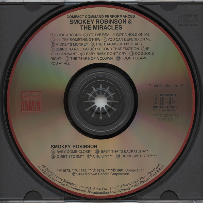 Smokey Robinson And The Miracles : Compact Command Performances: 18 Greatest Hits (V001)