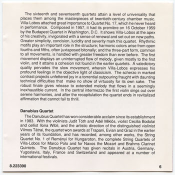 Danubius Quartet : Heitor Villa-Lobos: String Quartets Nos. 11, 16 And 17 (V001)