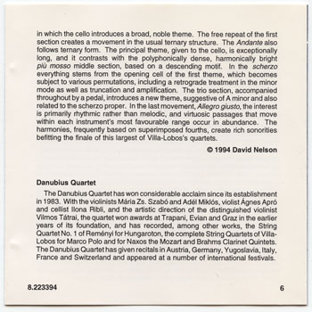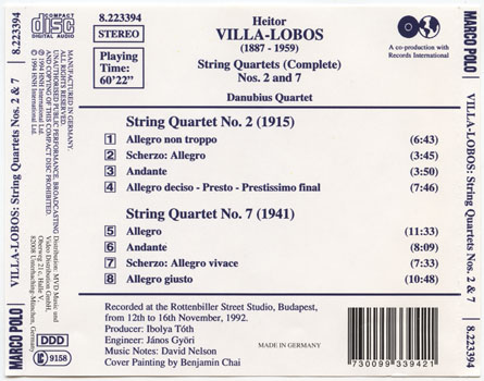 Danubius Quartet : Heitor Villa-Lobos: String Quartets Nos. 2 And 7 (V001)