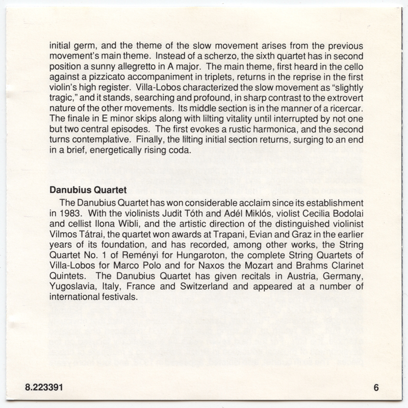 Danubius Quartet : Heitor Villa-Lobos: String Quartets Nos. 4, 6 And 14 (V001)